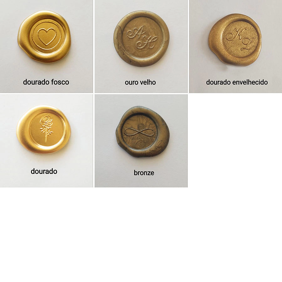 *Atenção - personalização*  Na segunda foto você verá opções de desenhos para lacre, caso queira algo diferente ou personalizar seu lacre com iniciais ou brasão é necessário pagar a taxa de personalizaçõa no valor de R$120,00, clique aqui.